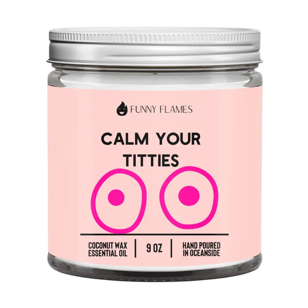 And for all the men out there, don't be shy about burning this candle too. After all, everyone can benefit from a little bit of relaxation and a good chuckle. So go ahead, light up this Calm Your Titties candle and let the stress melt away.