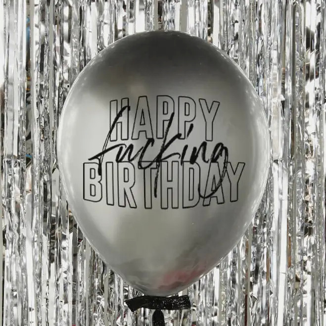 Happy Fucking Birthday Silver Chrome Badass Balloon